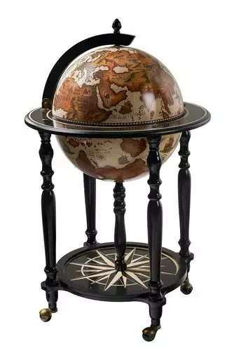Globo Mappamondo Portabottiglie Beigeo E Legno Nero 92h