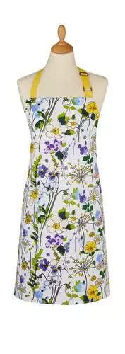 Grembiule in 100% cotone a marchio Ulster Weavers presenta un design ispirato ai prati con fiori selvatici primaverili, Wild flower presenta un design che ricorda la pittura acquerello, con colori quali il giallo solare, il lilla e il viola ricordandoci l'esplosione della natura a Primavera.