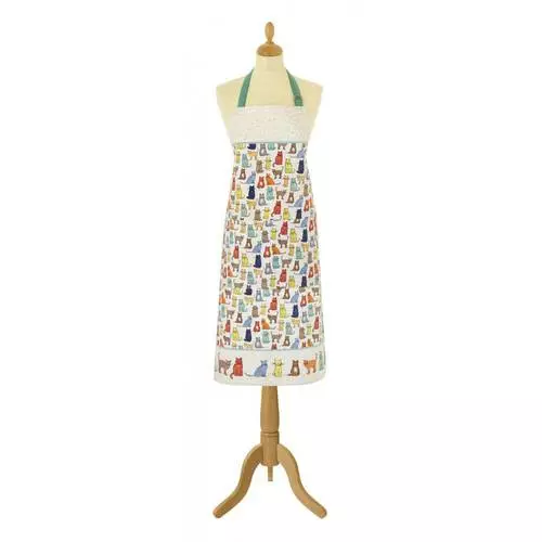Grembiule in 100% cotone a marchio Ulster Weavers presenta immagini di gatti colorati su uno sfondo bianco. Questo elegante grembiule è dotato di una tasca frontale, una tracolla regolabile con bottoni e una cintura blu che avvolge la cintura che completa i colori di tutto il design. Un'idea regalo fantastica per un amante dei gatti o degli animali.