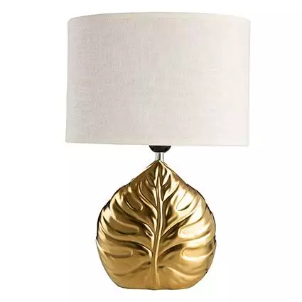 Lampada da tavolo con base in ceramica a forma di foglia colore oro
