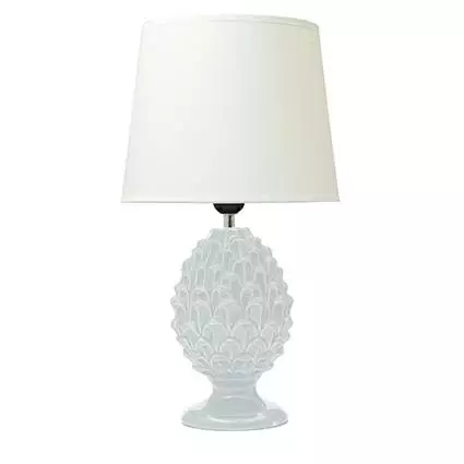 Lampada da tavolo con base in ceramica a forma di pigna ispirata alla tradizione siciliana dove la pigna in ceramica è un ornamento che non può mancare in una casa come augurio di salute, buona fortuna e prosperità.