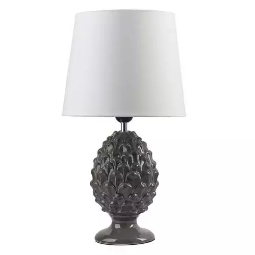 Lampada da tavolo con base in ceramica a forma di pigna ispirata alla tradizione siciliana dove la pigna in ceramica è un ornamento che non può mancare in una casa come augurio di salute, buona fortuna e prosperità.