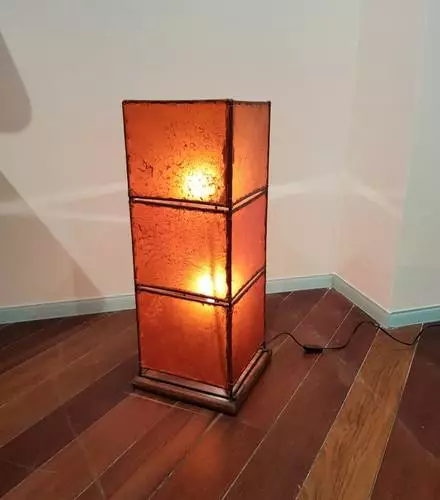 Lampada Etnica Pelle Arancio Quadrata 78h