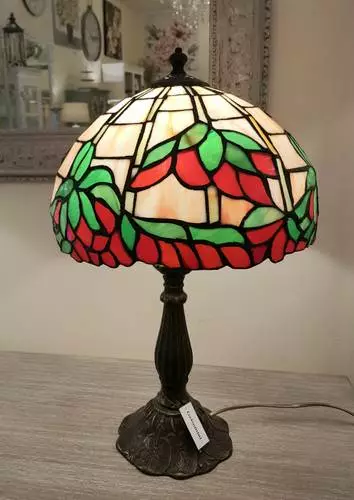 Lampada Tiffany Vetro Fiori Rossi E Verde H48
