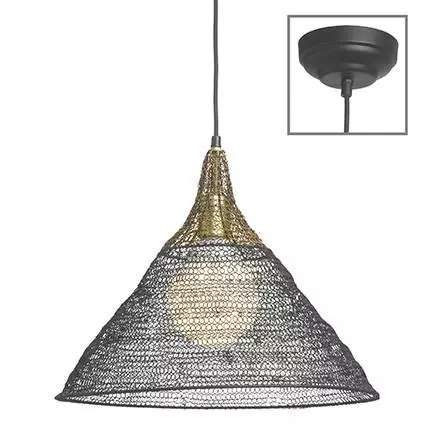 Lampadario realizzato a mano in metallo intrecciato a rete.