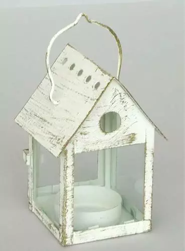 Piccola lanterna porta tea-light in metallo bianco con vetri.