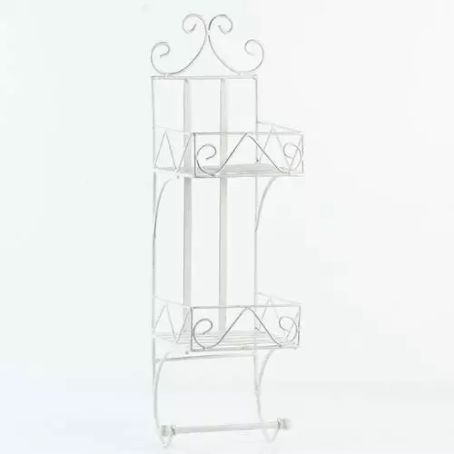 Mensola Ferro Bianco 2 Tasche Con Porta Asciugamani