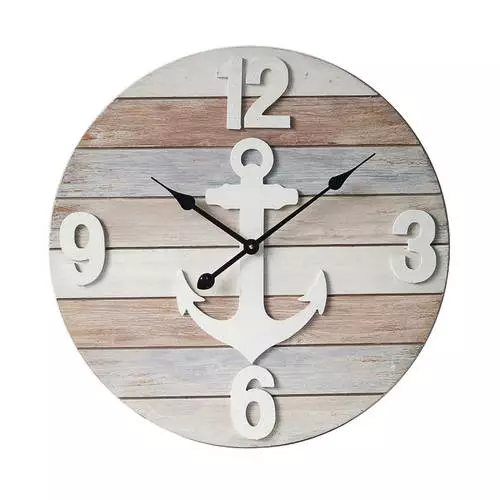 Orologio da parete realizzato con tavole in legno di abete dipinto in bianco azzurro e naturale.