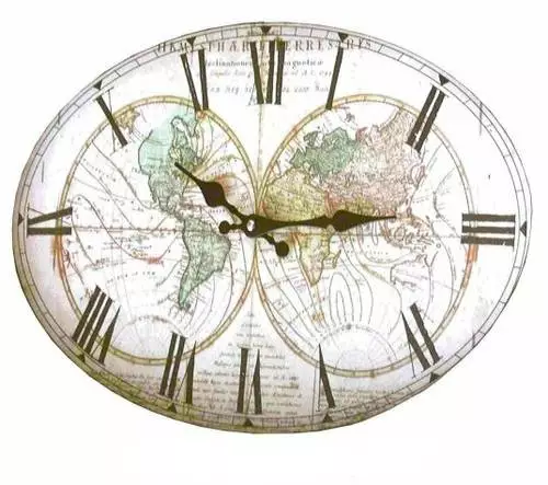 Orologio da muro di formato ovale con base in legno e applicazione di stampa in stile vintage.