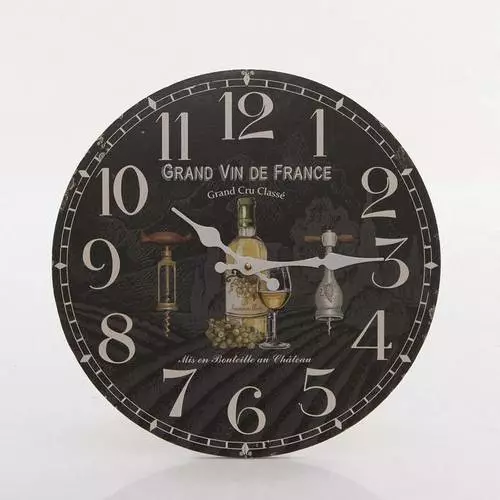 Orologio da muro con base in legno e applicazione di stampa in stile vintage.