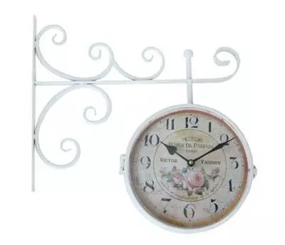 Orologio tipo stazione in metallo bianco a due facce da parete.
