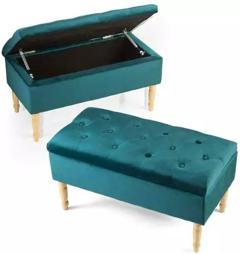 Panca Contenitore Velluto Capitonnè Blu Petrolio Cm80
