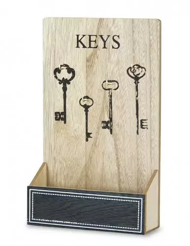 Pannello Portachiavi Legno Naturale Con Tasca Nera Keys