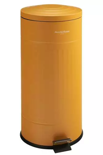 Pattumiera Metallo Tonda Giallo Ocra Vintage A Pedale 30 Litri