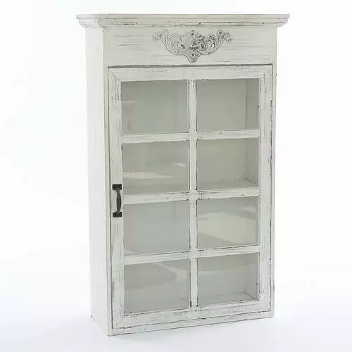 Pensile da parete in legno bianco finitura anticata shabby con 1 ante finestrata con vetro, 1 ripiano interno.
