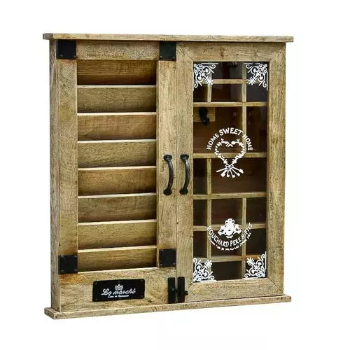 Pensile da parete realizzato in legno di mango naturale con scomparti per la posta, chiavi e oggetti.