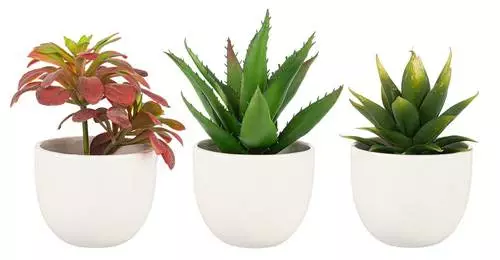 Piantina grassa sintetica in polietilene composta in vaso di ceramica bianco, forme assortite.