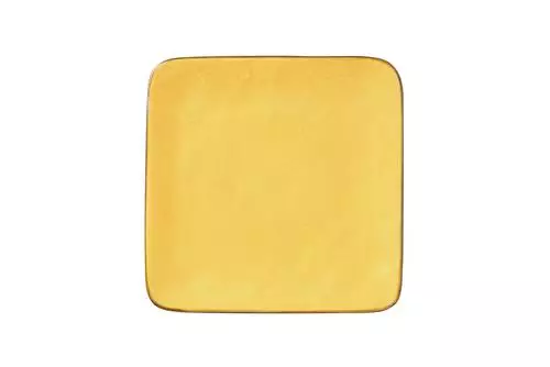 Piccolo piatto quadrato in ceramica gres porcellanato, della collezione mediterraneo caratterizzato dalla lavorazione artigianale con bordi e rilievi irregolari.