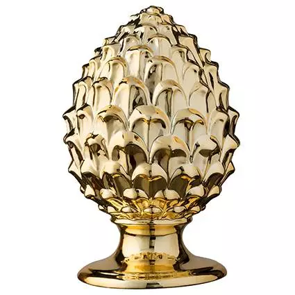 Decorazione per ambienti realizzata in porcellana colorata ispirata alla tradizione siciliana dove la pigna in ceramica è un ornamento che non può mancare in una casa come augurio di salute, buona fortuna e prosperità, ed è un regalo molto gradito a chi inaugura una nuova abitazione, una nuova attività o a chi si sposa per augurare un buon inizio.