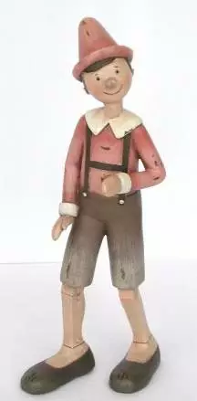 Statuina decorativa di pinocchio in resina con finiture simil-legno.