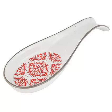Poggia mestoli da cucina in ceramica colorata rossa e bianca con decorazioni ispirate al medio oriente