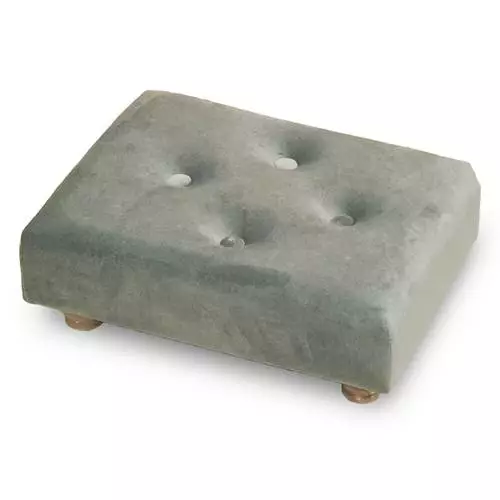 Panchetto poggiapiedi imbottito con rivestimento in velluto, piedini in legno.