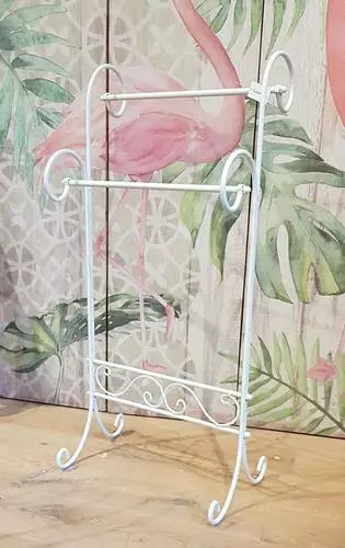 Piantana portasciugamani da terra in ferro colore bianco finitura shabby.