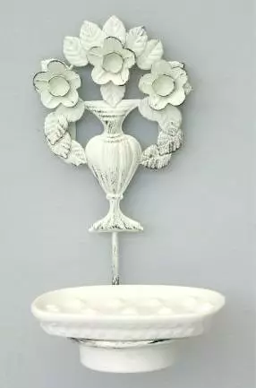 Porta sapone da muro in ferro bianco anticato , piattino in ceramica.