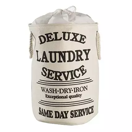 Pratico portabiancheria tondo in tessuto con chiusura a sacco e manici in corda, ideale da posizionare in bagno e in lavanderia per la biancheria sporca e utile contenitore per riordinare la casa utilizzato come porta oggetti, coperte, vestiti e giocattoli.