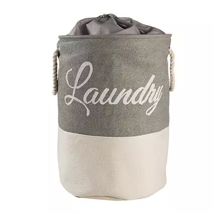 Pratico portabiancheria tondo in tessuto con chiusura a sacco e manici in corda, ideale da posizionare in bagno e in lavanderia per la biancheria sporca e utile contenitore per riordinare la casa utilizzato come porta oggetti, coperte, vestiti e giocattoli.