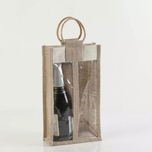 Portabottiglie Borsina Iuta 2 Posti Con Manico Legno
