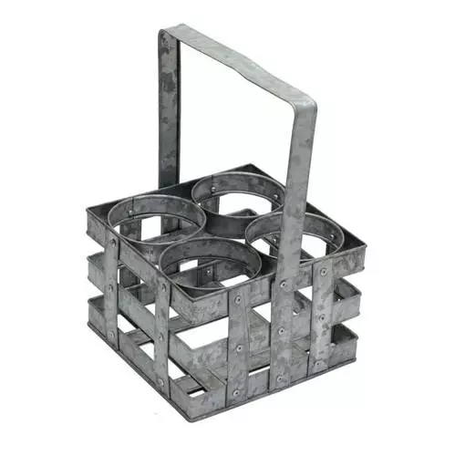 Porta bottiglie da trasporto in ferro zincato con manico.