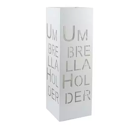 Porta ombrelli quadrato in metallo verniciato color bianco con scritta traforata "Umbrella Holder".