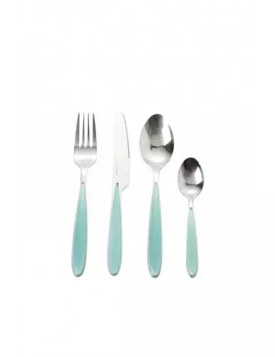 Il set posate 16 pezzi Brandani è composto da: 4 cucchiaio, 4 forchetta, 4 coltello e 4 cucchiaino in acciaio inox lucido. Accessori fondamentali in tavola, le posate Brandani, hanno un manico maneggevole e facile da impugnare. La versione acqua marina regala alla tavola eleganza e freschezza, charme e armonia.