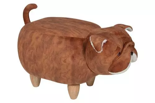 Pouf Animale Cane Bulldog Ecopelle Colore Cuoio