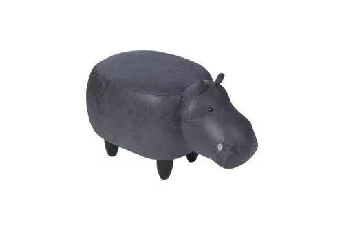 Pouf Animale Ippopotamo Grigio Ecopelle Piedini Legno