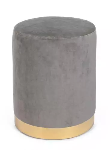 Pouf Cilindro Velluto Grigio Fascia Oro 40h