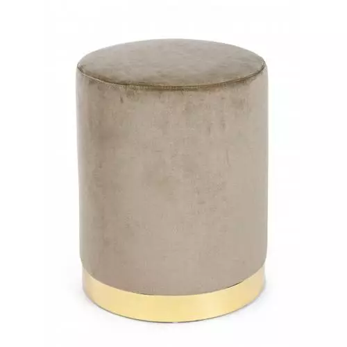 Pouf tondo imbottito con rivestimento tessuto effetto velluto.