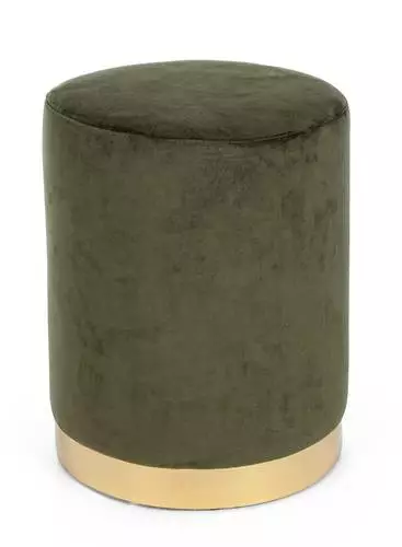 Pouf tondo imbottito con rivestimento tessuto effetto velluto.