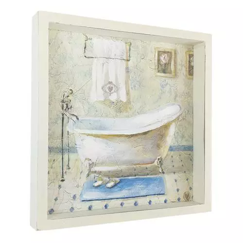 Quadro Dipinto Vasca Da Bagno Tappeto Pois Blu 26×26