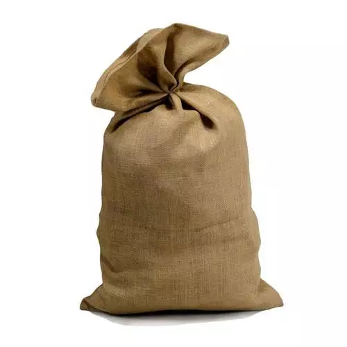 Sacco realizzato in tessuto di iuta colore naturale.