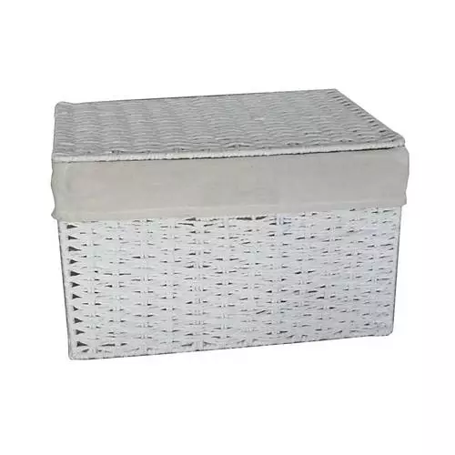 Scatola intrecciata in rafia sintetica con fodera in cotone estraibile.
