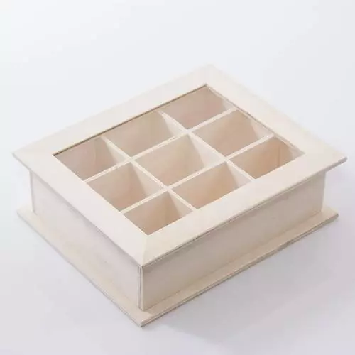 Scatola in legno grezzo di balsa con coperchio con vetro.
