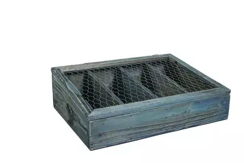 Scatola porta posate in legno colore blu con divisorie a 4 scomparti.