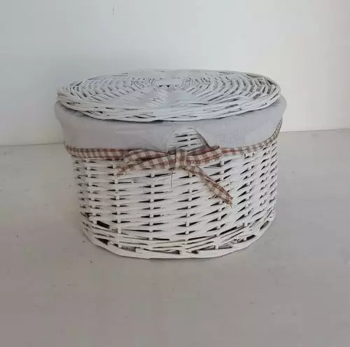 Scatola intrecciata in vimini bianco con fodera in cotone estraibile