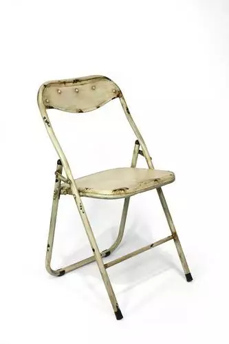 Sedia pieghevole in ferro color crema con finiture vintage.
