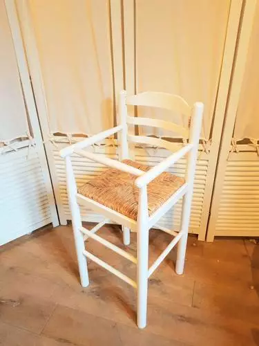Seggiolone Bimbo Legno Bianco Seduta Impagliata