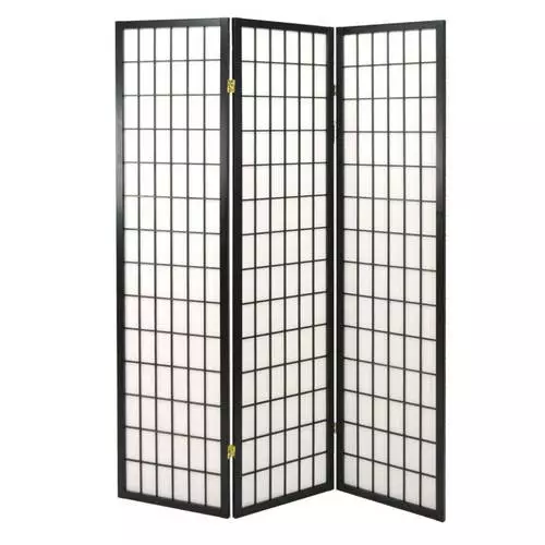 Separè modello giapponese con struttura in legno di abete colore nero a griglia e pannello bianco in carta di riso.