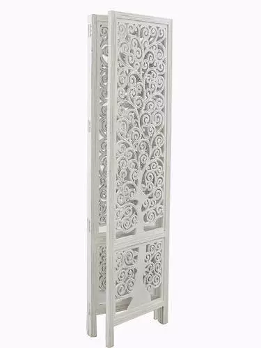 Separè Legno Mango Bianco Intarsio Alberi 3 Ante