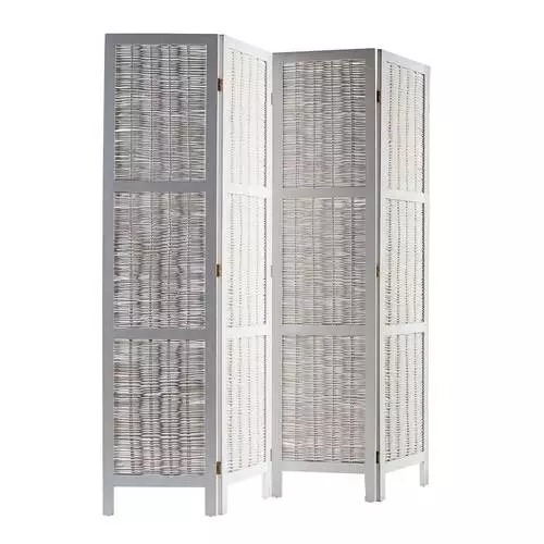 Separè 4 ante con struttura in legno laccato bianco.
